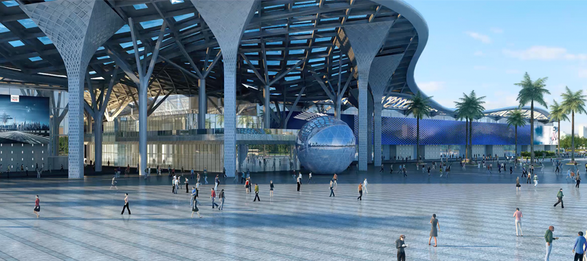 位于展馆南入口两侧的南广场,面积合计约3.5万平方米。